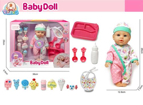 Păpușă 30cm cu sunet și accesorii, în salopetă L-2403S