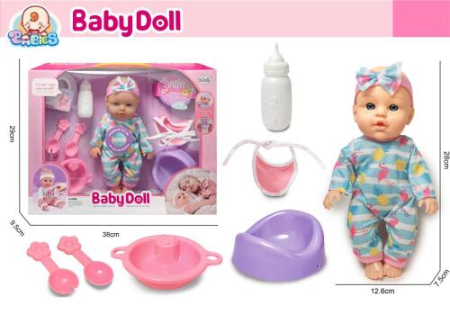 Papusa 30 cm cu sunet si accesorii, albastra L-2403J