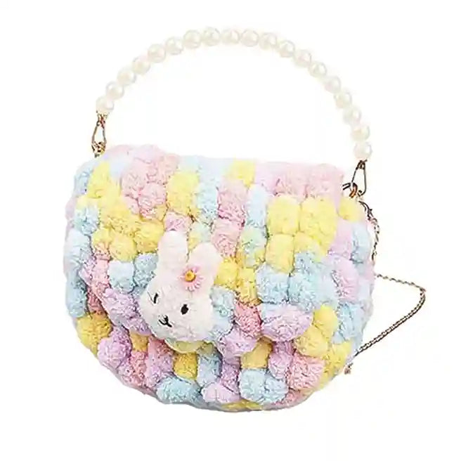 Set pentru creare gentuță cu pompoane, 23 cm, cu accesorii, culoare pastel, semicerc, cod 843009