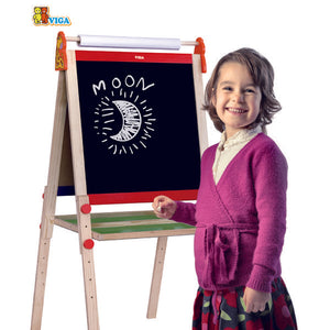 Двойной мольберт – идеальный инструмент для творчества и обучения детей от 3 лет. Оснащён двумя рабочими поверхностями: чёрной для рисования мелом и белой магнитной для маркера. Высота мольберта регулируется, что делает его подходящим для детей разного возраста.